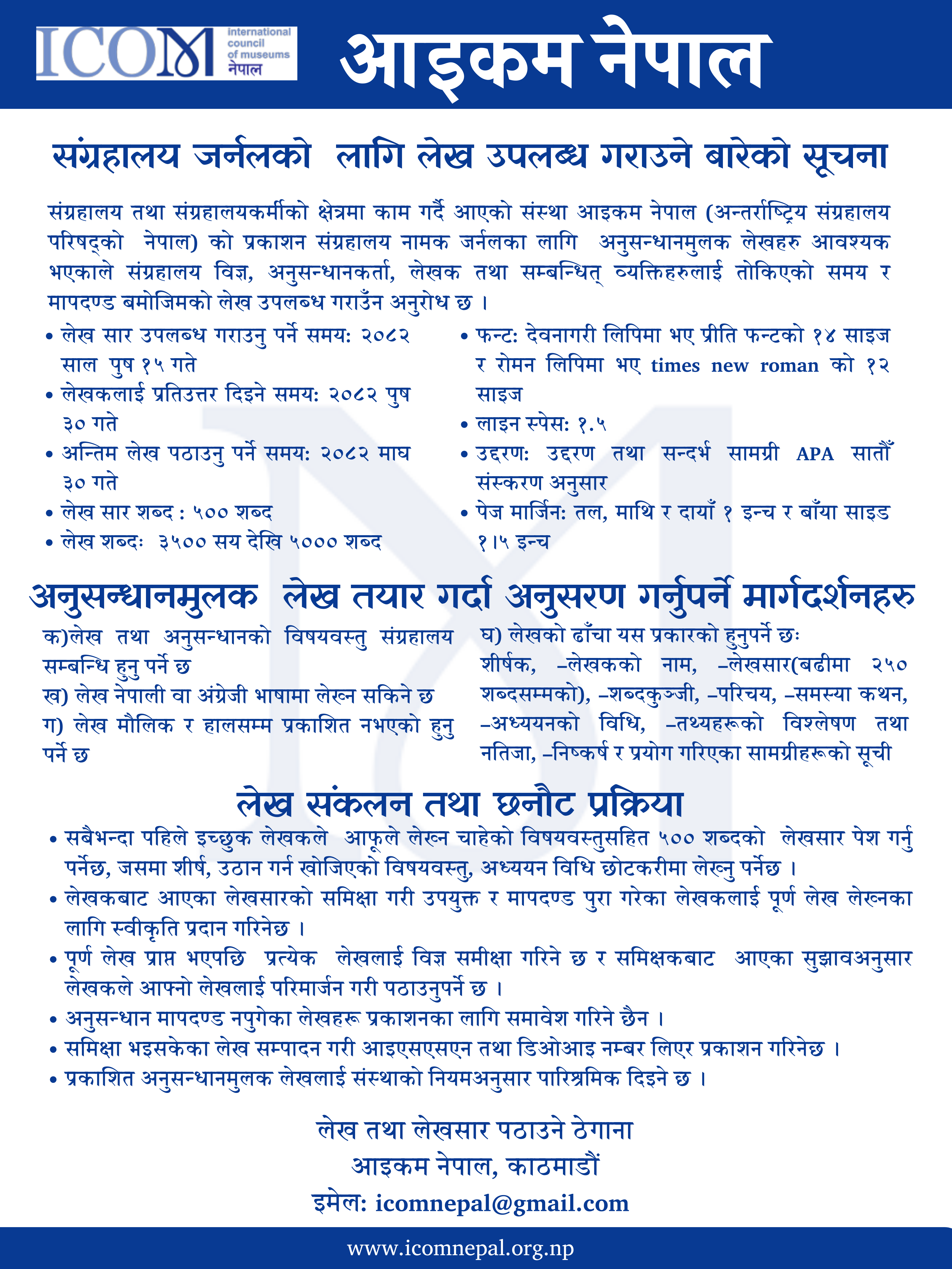 संग्रहालय जर्नलको लागि लेख उपलब्ध गराउने बारेको सूचना